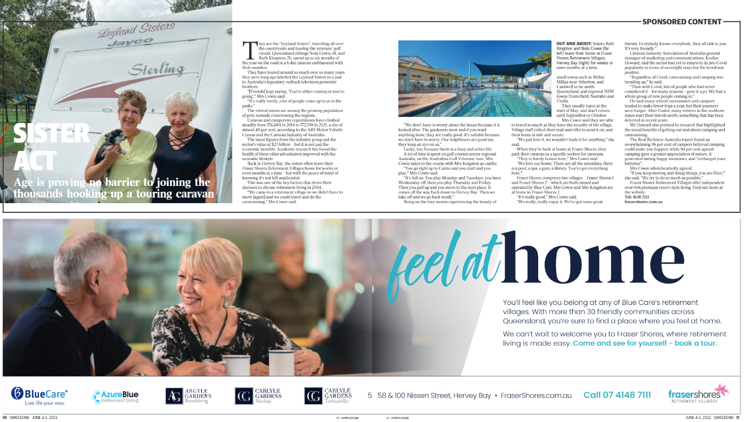 Back in Hervey Bay, the sisters often leave their Fraser Shores Retirement Villages home for weeks or even months at a time – but with the peace of mind of knowing it’s not left unattended.